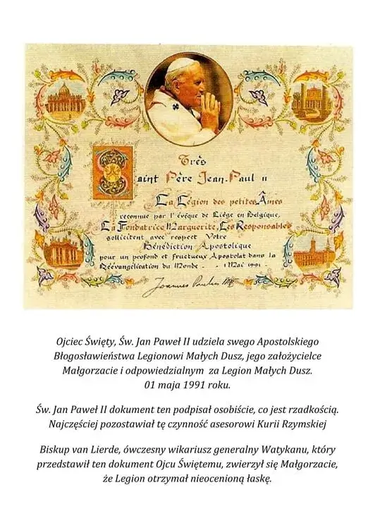 Wspólnota "Legion Małych Dusz" jest stowarzyszeniem Kościoła Rzymsko - Katolickiego. Jego powstanie zapowiedziała 100 lat temu św. Teresa od Dzieciątka Jezus, francuska karmelitanka bosa. (Zob. Dzieje Duszy, Poznań 2005, s. 274). Legion został założony w Belgii w 1971 r. Jego założycielką jest Małgorzata Balhan, matka rodziny robotniczej w Walonii, która sprecyzowała cele stowarzyszenia.