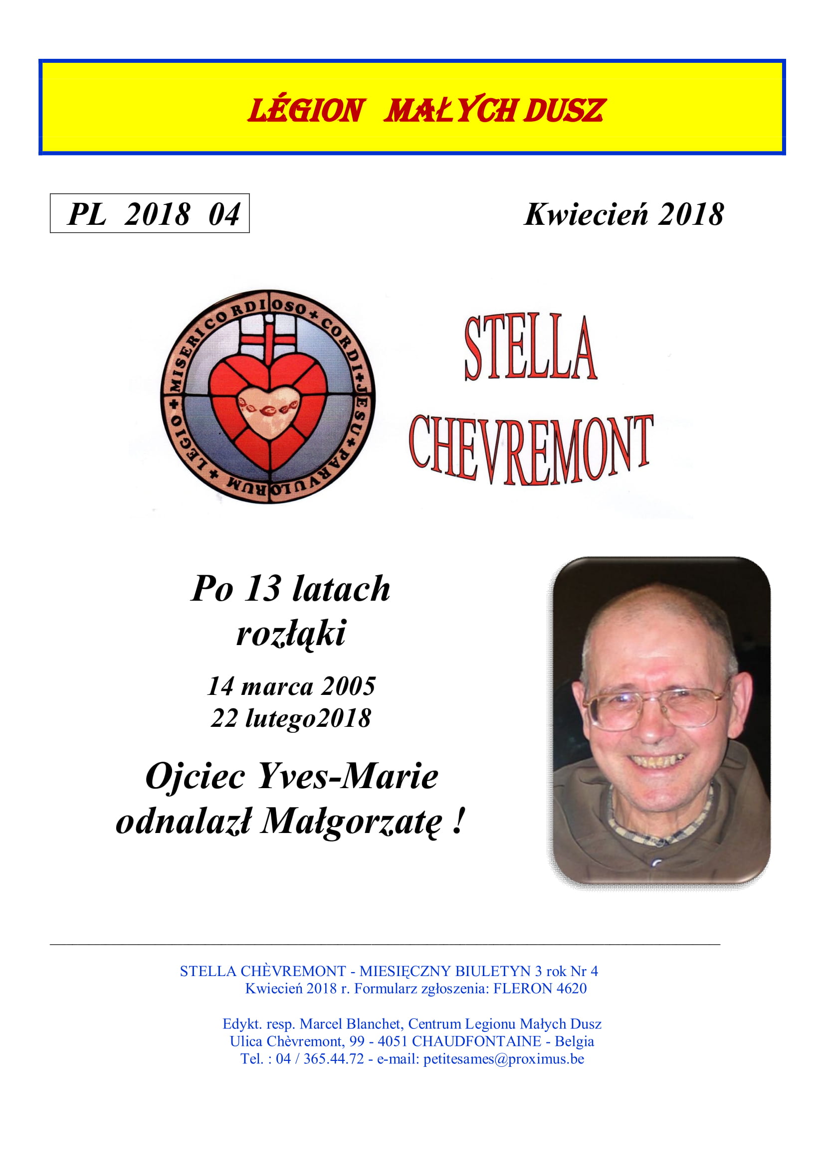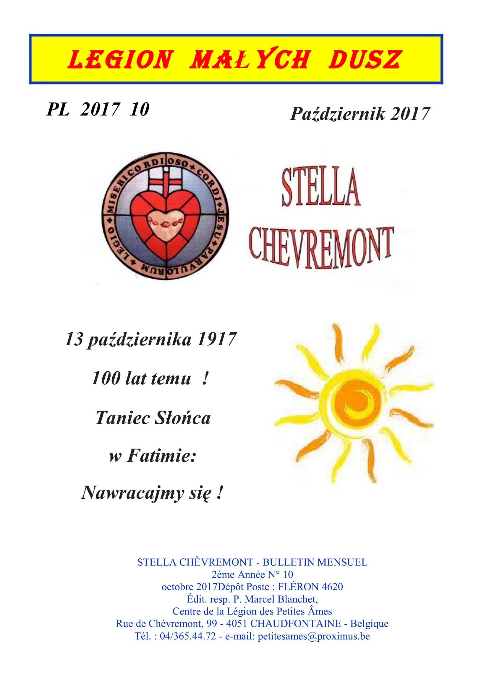 Kwartalnik "Stella" jest wydawany w Centrum Legionu Małych Dusz w Chevremont, w Belgii.